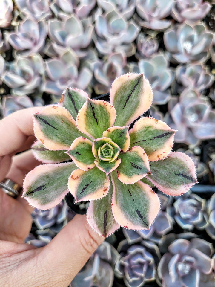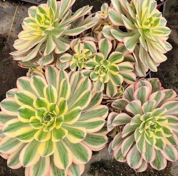 Rosette Appearance: Large rosettes with green and creamy yellow leaves, often tinged with pink or red edges under ample sunlight.